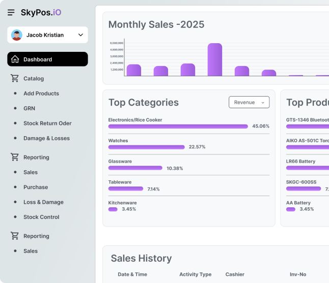 Built to empower small and medium retail businesses, SkyPos.iO simplifies every sale, automates your inventory, and delivers real-time insights, so you can grow with confidence, reduce errors, and serve customers faster than ever — all through a single, secure, cloud-powered platform built for tomorrow.